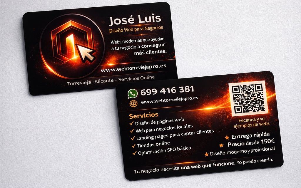 Si buscas diseño web en Torrevieja o una web profesional para tu negocio, aquí no vas a tratar con algo frío ni genérico. La idea es entender bien tu proyecto, adaptar el diseño a lo que quieres transmitir y crear una web pensada para dar confianza, captar clientes y facilitar el contacto.